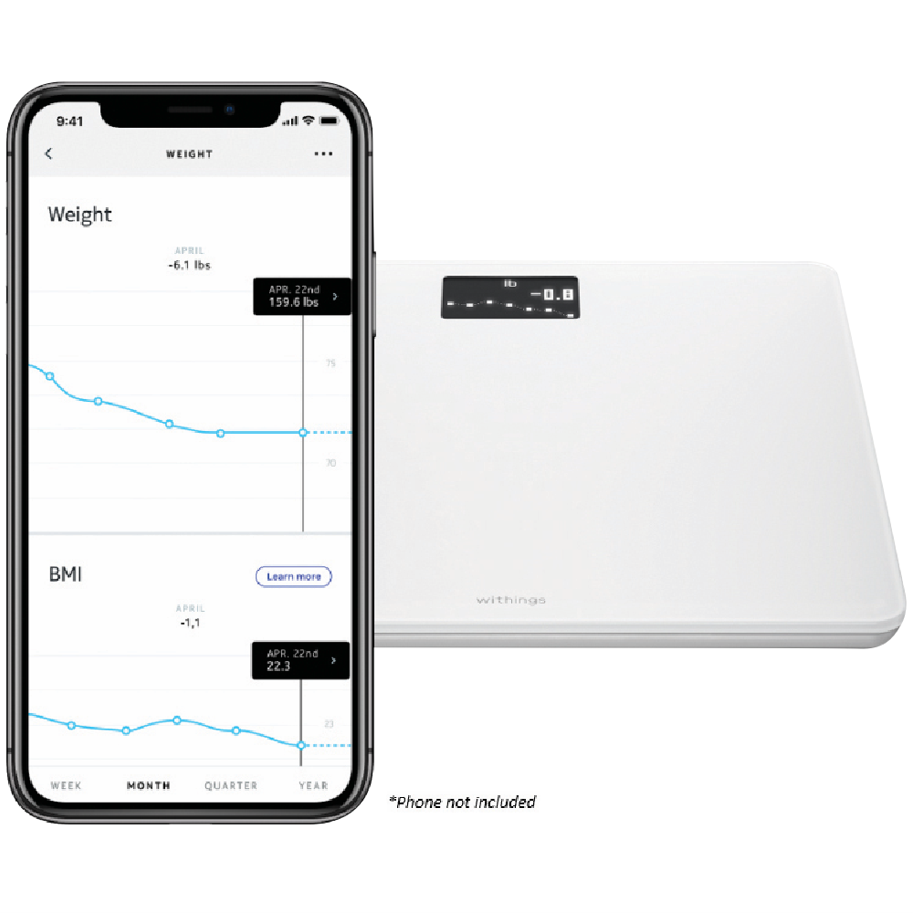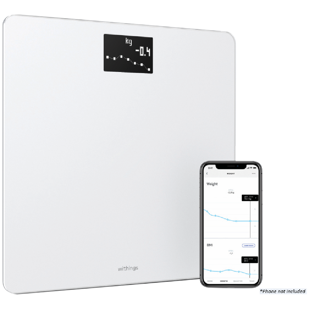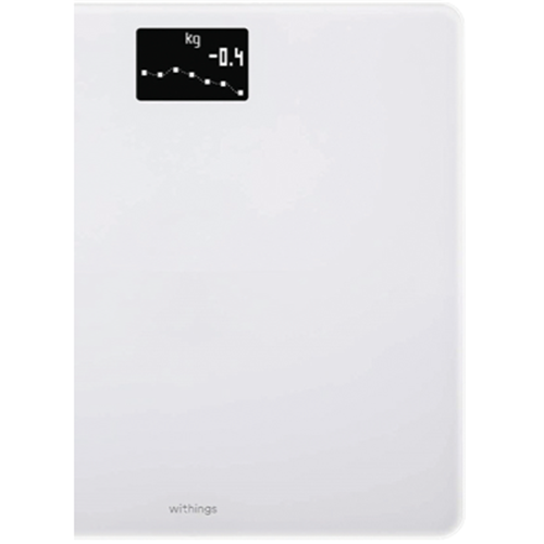 Get an accurate measurement of your weight and BMI and easily track your progress thanks to this clinically tested Withings Body Weight & BMI Wi-Fi Scale (White) WBS06WHITENAU. Body is an advanced connected scale providing immediate on-screen feedback via weight trend and BMI screens and automatically syncing with the downloadable Withings Health Mate app on your smartphone - simply set a weight goal manage your weight and see progress over time. You won't need to have your phone with you while you weigh-in to synchronise your data. Plus the screen displays a trend of your last eight weigh-ins and automatically calculates your BMI to give you a picture of how you're tracking. Patented Position Control technology delivers a highly precise measurement of weight and BMI accurate to approximately 100 grams and allows up to eight users to track their weight and achieve their individual goals. These smart scales even have a Pregnancy Mode so expecting mothers can accurately track pregnancy weight gain while Baby Mode offers easy monitoring of baby's weight; simply by stepping on the scale while holding them.