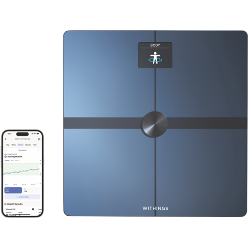 Take control of your health and fitness with the Withings Body Smart Scale. This sleek black smart scale not only tracks your weight but also syncs with health apps via WiFi or Bluetooth to provide in-depth body composition analysis. Using highly precise sensors it monitors 13 key body metrics including body fat BMI muscle and bone mass and standing heart rate. The extra large 2.8 colour display shows your data along with a daily weather forecast to start your day. Setup is easy with support for up to 8 user profiles to track the whole family's progress. Whether you're looking to lose weight build strength or maintain your health the Withings Body Smart Scale provides powerful insights. With a tempered glass platform solid aluminium base and included carpet feet this smart scale looks great and stands the test of time. The manufacturer's part number for this product is WBS13-BLACK. Bring comprehensive body tracking into your bathroom with the Withings Body Smart Scale.