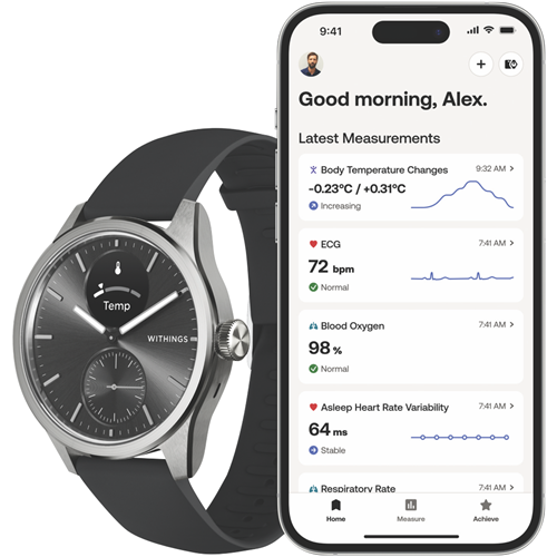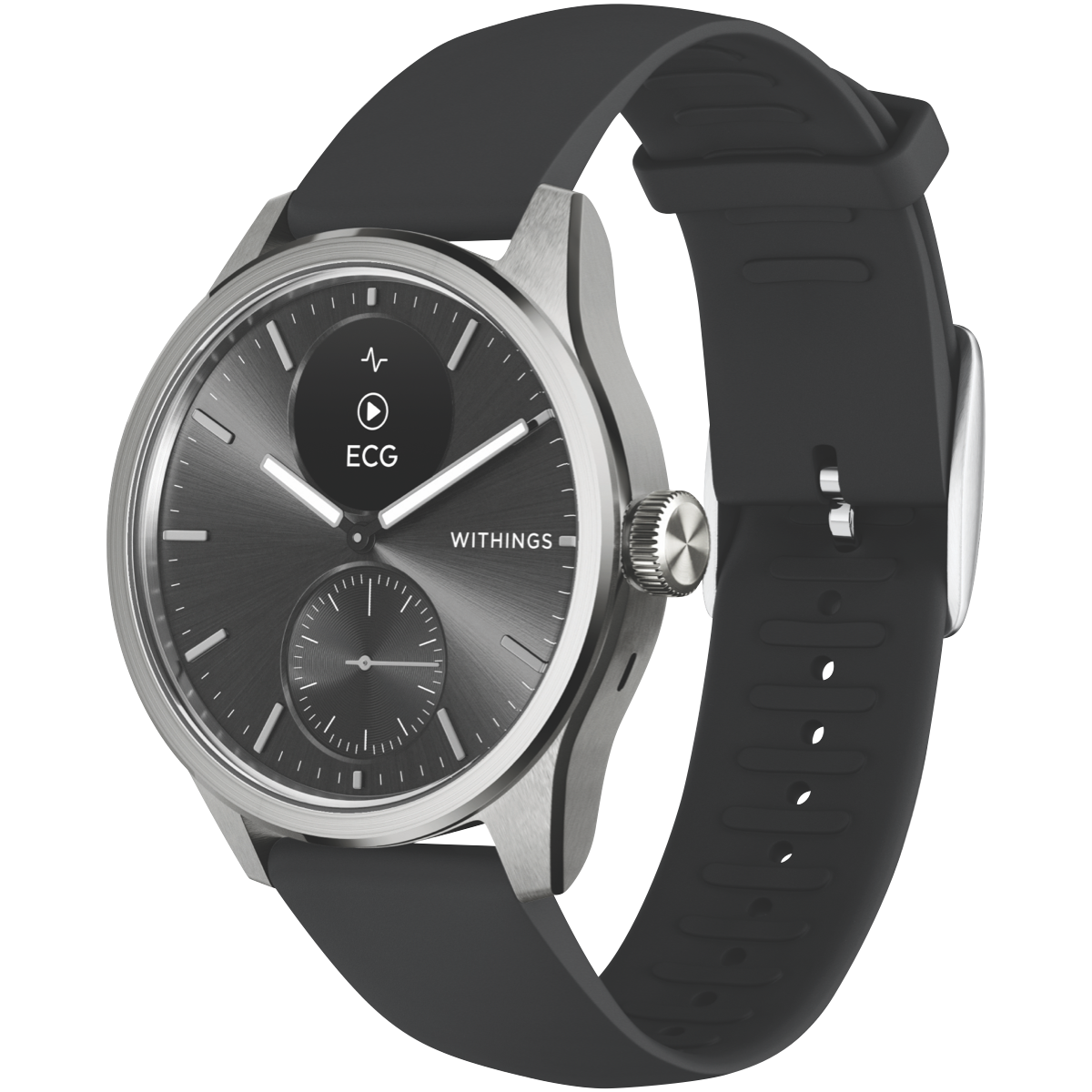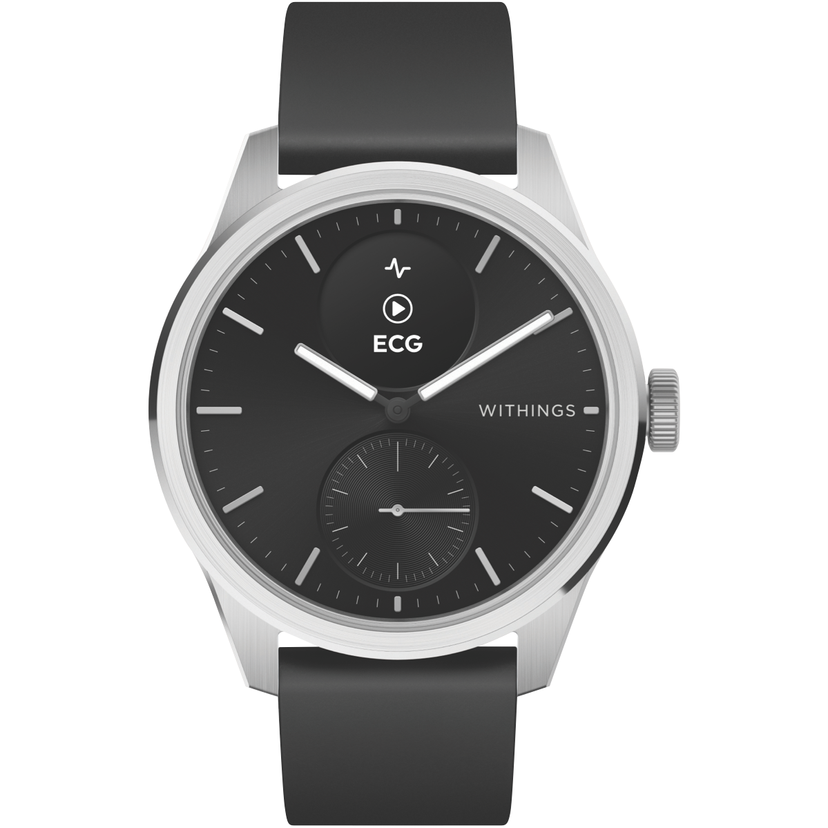 Make a striking first impression with the latest Withings Scanwatch 2 42mm Smart Watch in sophisticated black. This stylish wearable offers advanced health tracking in a slim lightweight profile that looks as good as it performs. Monitor your heart rate sleep patterns and daily step count while enjoying the convenience of smartphone notifications right on your wrist. The bold 42mm grayscale OLED display ensures excellent visibility indoors and out. With an exceptional 30 day battery life water resistance up to 5ATM and seamless compatibility with both iOS and Android devices this smartwatch has all your bases covered. Let the Scanwatch 2 keep you connected active and informed with personalized insights into your health and fitness goals. Don't miss out on the impressive capabilities packed into the minimalist Scanwatch 2 design. Order the Withings HWA10 smartwatch today for modern convenience and versatile performance on the go. Manufacturer Part Number: HWA10-MODEL-4. 12 month warranty.