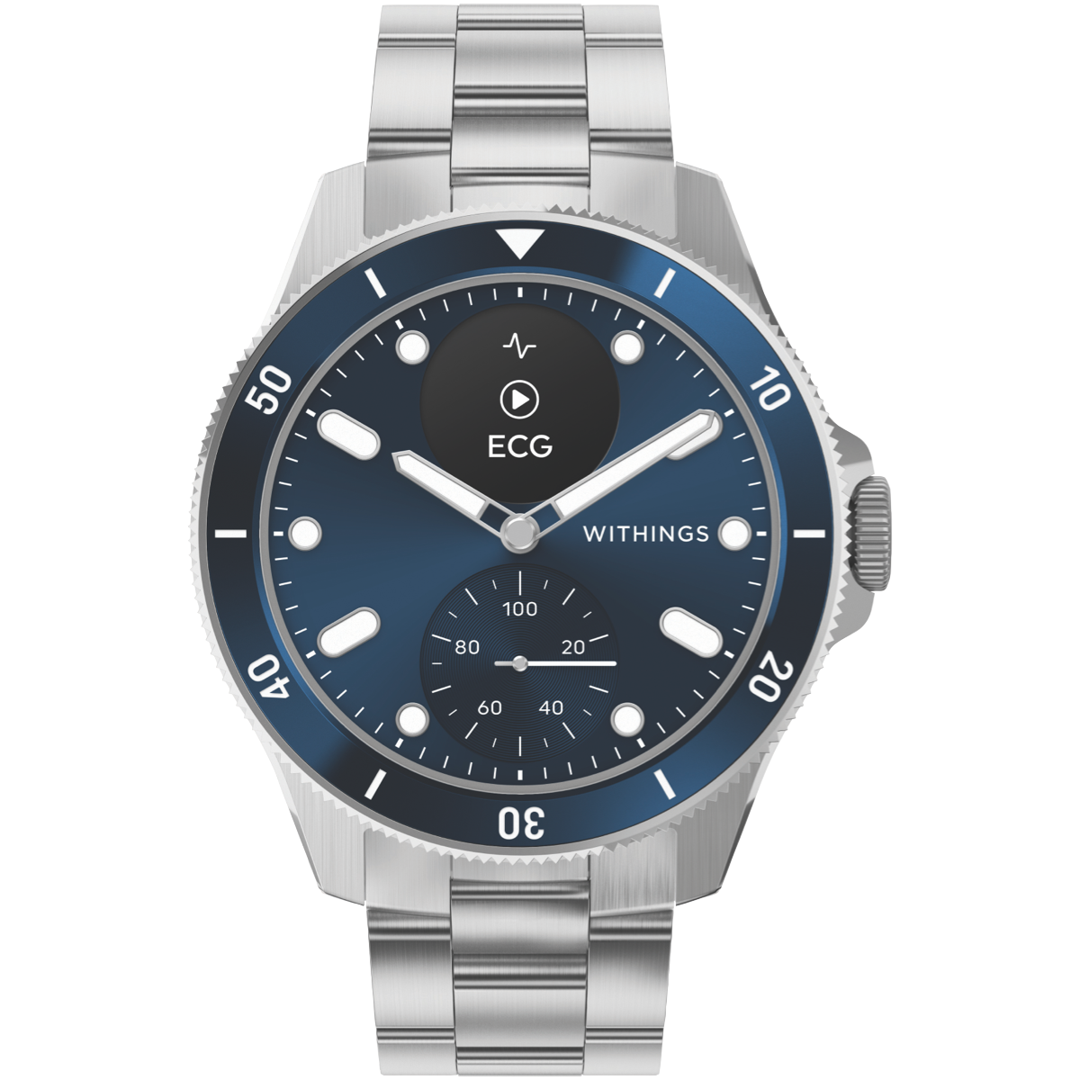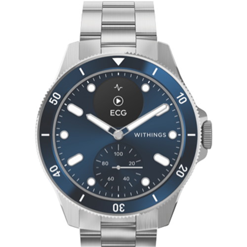 Bring the future to your wrist with the Withings Scanwatch Nova 42mm in stunning blue. This smartwatch's sleek 0.63-inch high-resolution OLED display ensures your stats texts and calls are crisp clear and easy to view. With an impressive 30-day battery life you can track health and fitness around the clock. Count steps monitor heart rate track sleep patterns and more with medical-grade accuracy. Built-in GPS lets you map outdoor workouts without lugging your phone. Water resistant to 100m Scanwatch is your ideal swimming and shower companion. Seamlessly connect to your Apple or Android device via Bluetooth to receive app notifications and access your calendar. Weighing just 52.6g its lightweight profile and interchangeable wristbands ensure all-day comfort. Sync Scanwatch to the Withings Health Mate app for unlimited free storage of all your vital data. Live healthier and more mindfully with this feature-packed smartwatch. HWA10-MODEL-7. 12 month warranty.