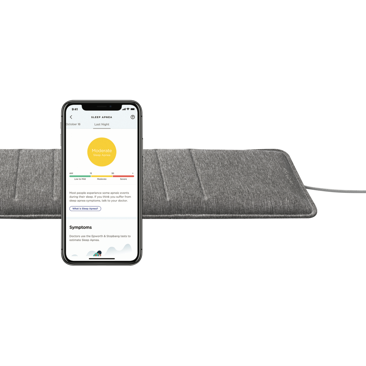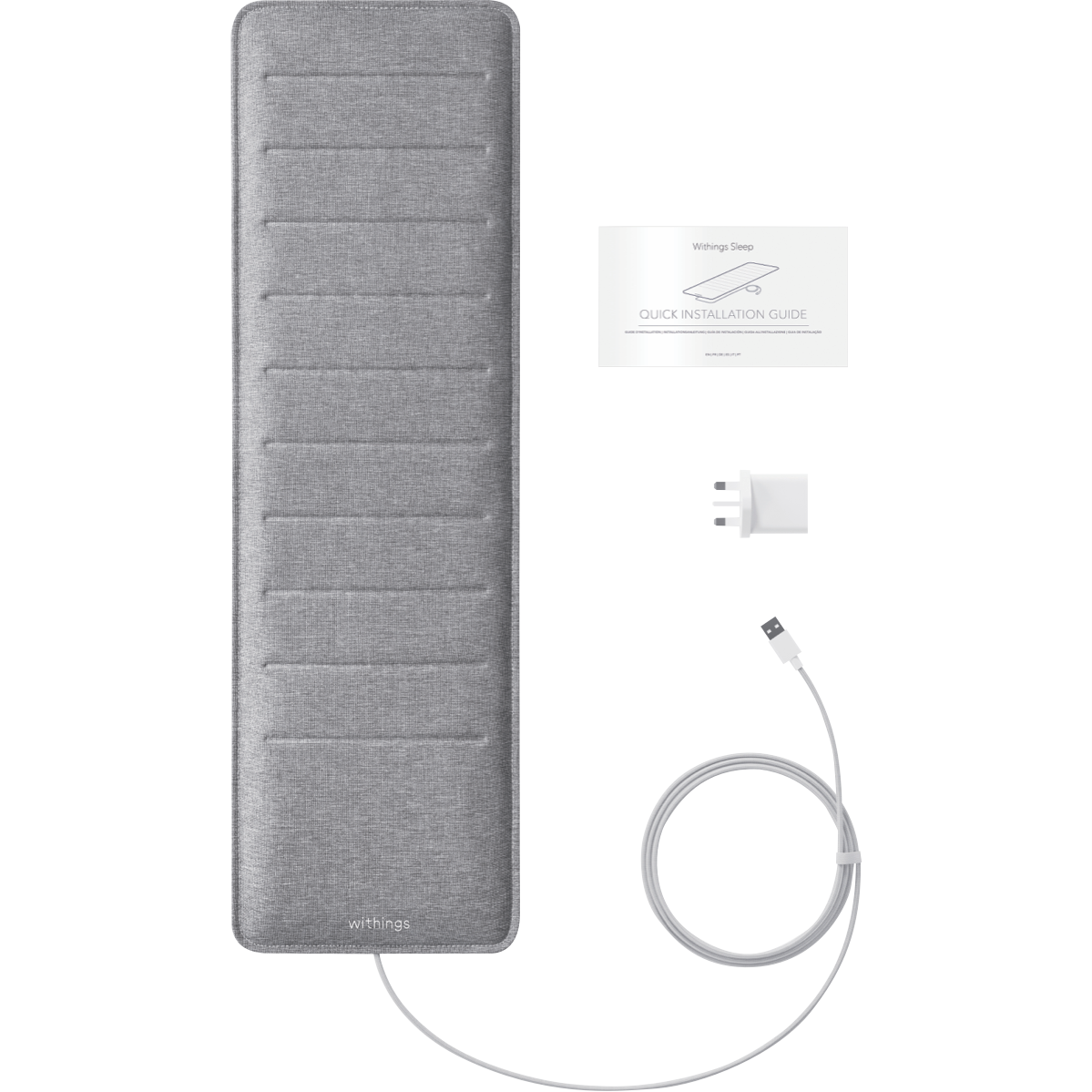Keep track of your sleep patterns and wake feeling refreshed with the Withings Sleep Analyser. This innovative sleep monitoring device slides discreetly under your mattress to track your sleep cycles heart rate and breathing disturbances giving you rich insights into your sleep quality. Using advanced sensors it detects sleep cycles including light deep and REM to provide a full sleep score each morning via the Health Mate app. The bedside display lets you check the time room temperature and upcoming alarms without reaching for your phone. Designed for accuracy the Sleep Analyser can pick up the slightest body movements and fluctuations in breathing. You'll wake up to personalized tips for better rest based on your heart rate sleep cycles and sleep environment. With long battery life and automatic synchronization this handy gadget makes it simple to understand your sleep and make improvements. Rest easy knowing the discreet Sleep Analyser is your partner for healthier more rejuvenating sleep night after night. The manufacturer's part number for this product is WSM02-ANALYSER. Learn more about the Withings Sleep Analyser today.