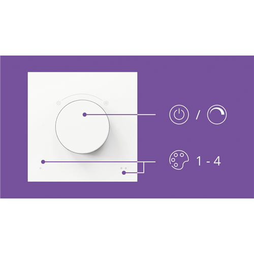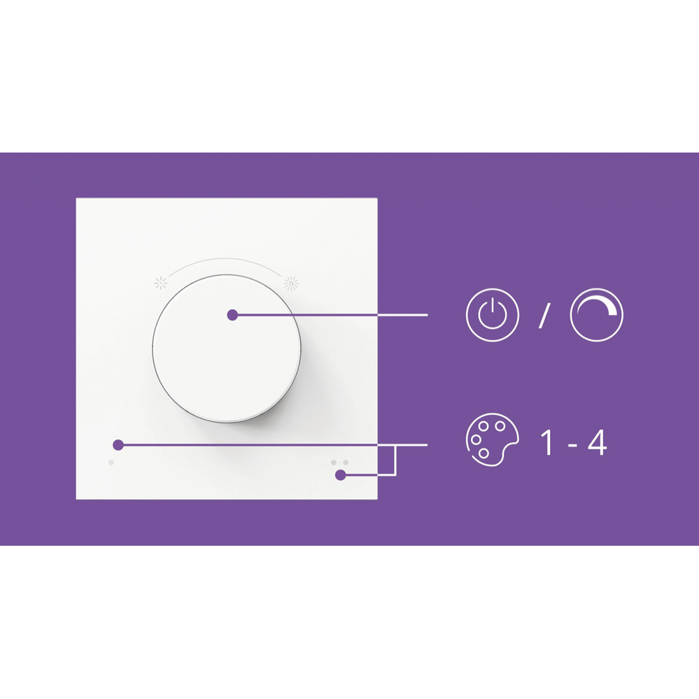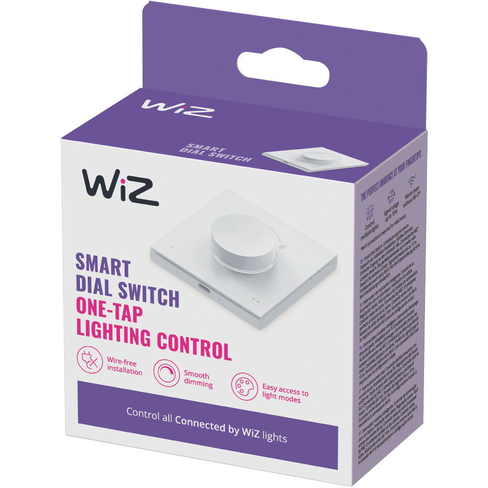 Control your connected lighting with ease using this Smart Tap Dial Switch. It works with all Connected by WiZ products giving you a simple way to manage your smart home setup. The white remote connects via WiFi (2.4GHz) and Bluetooth so you'll always have a reliable connection to your devices. Powered by a USB-rechargeable 5V battery you won't need to worry about frequent battery changes. Comes with a 2 Year warranty. Model WIZTAPDIAL.