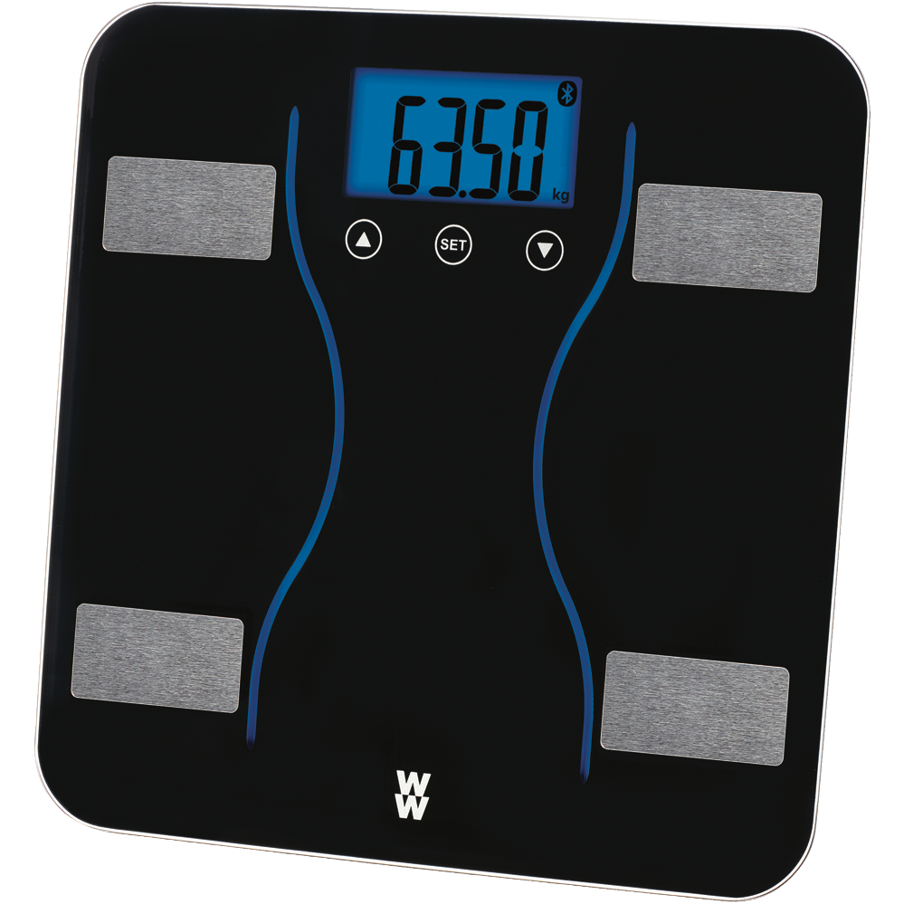 Step on the WW Body Analysis Bluetooth Diagnostic Scale and unlock a wealth of insights into your health. With its sleek black tempered glass construction this smart scale provides 10 user profiles and seamlessly syncs your weight body fat body water BMI and other metrics via Bluetooth to your iOS or Android device. By tracking your progress over time this scale helps you meet your goals whether that's losing fat gaining muscle or maintaining your weight. The 4.8cm digital readout with blue backlit display ensures easy visibility while the 182kg weight capacity provides durability and stability for users of all sizes. With a 10 year manufacturer's warranty this scale is built to last. The manufacturer's part number for this product is WW310A. Monitor your health and stay on track with your fitness objectives with this innovative Bluetooth scale..