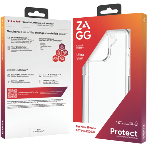 This sleek ZAGG Crystal Palace Case for iPhone 15 Pro 6.1 provides your device with a slim transparent profile for showcasing its original design while protecting against scratches and drops. The durable antimicrobial case shields your iPhone from bacteria growth while allowing wireless charging compatibility. With a raised edge to protect your iPhone's screen and camera from surface contact this case offers defense against scratches and cracks. The Crystal Palace also delivers easy access to all ports buttons and features of your iPhone 15 Pro 6.1. Whether you're a minimalist who wants to flaunt your phone's original color and styling or desire enhanced protection against damage this ZAGG iPhone case delivers. The manufacturer's part number for this product is 11901307066. Check out this ZAGG Crystal Palace Case to keep your iPhone 15 Pro 6.1 safeguarded in subtle style.