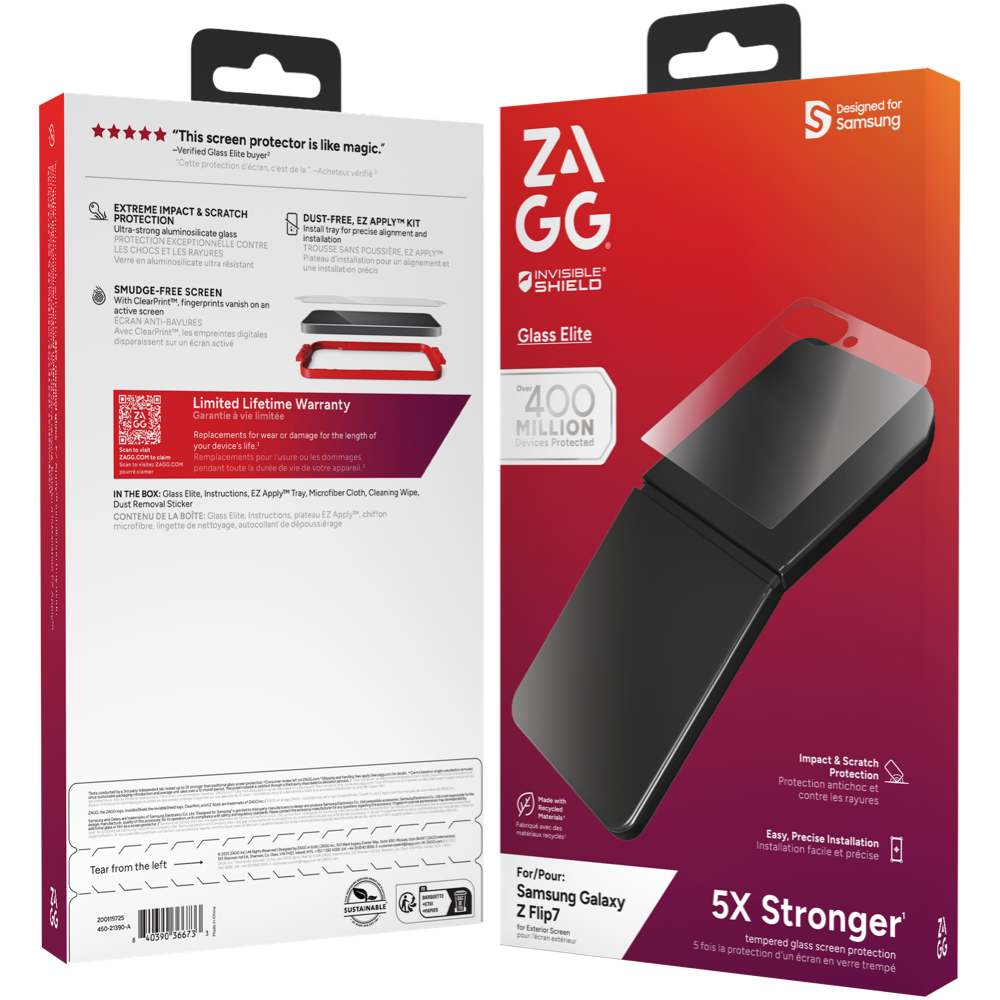 Protect your new Samsung Galaxy Z Flip7 with this specially designed InvisibleShield Glass Elite Screen Protector. Made specifically for the Z Flip7's unique folding design this clear protector shields your screen from scratches and everyday wear while maintaining touch sensitivity. Weighing just 100 grams it's lightweight yet durable and comes with a reassuring 2-year manufacturer's warranty for peace of mind. Model 11901339921.